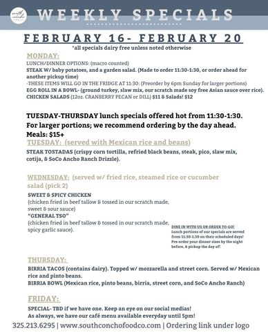 At South Concho Food Co., we believe that nothing tastes better than home-cooked food made with love. My dream is simple: if I can help even one person with similar dietary restrictions feel included and excited about food again, then I’ve done what I set out to do.
