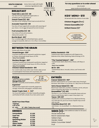At South Concho Food Company, being completely dedicated gluten-free isn’t a trend — it’s personal. After navigating life with celiac disease, I know firsthand how important it is to have a place where you can eat safely without second-guessing a single ingredient. Every recipe we create is crafted in a 100% gluten-free kitchen with intention, care, and high standards — but flavor is never sacrificed. Our goal is simple: food that feels safe, tastes incredible, and makes you forget it’s gluten-free at all.